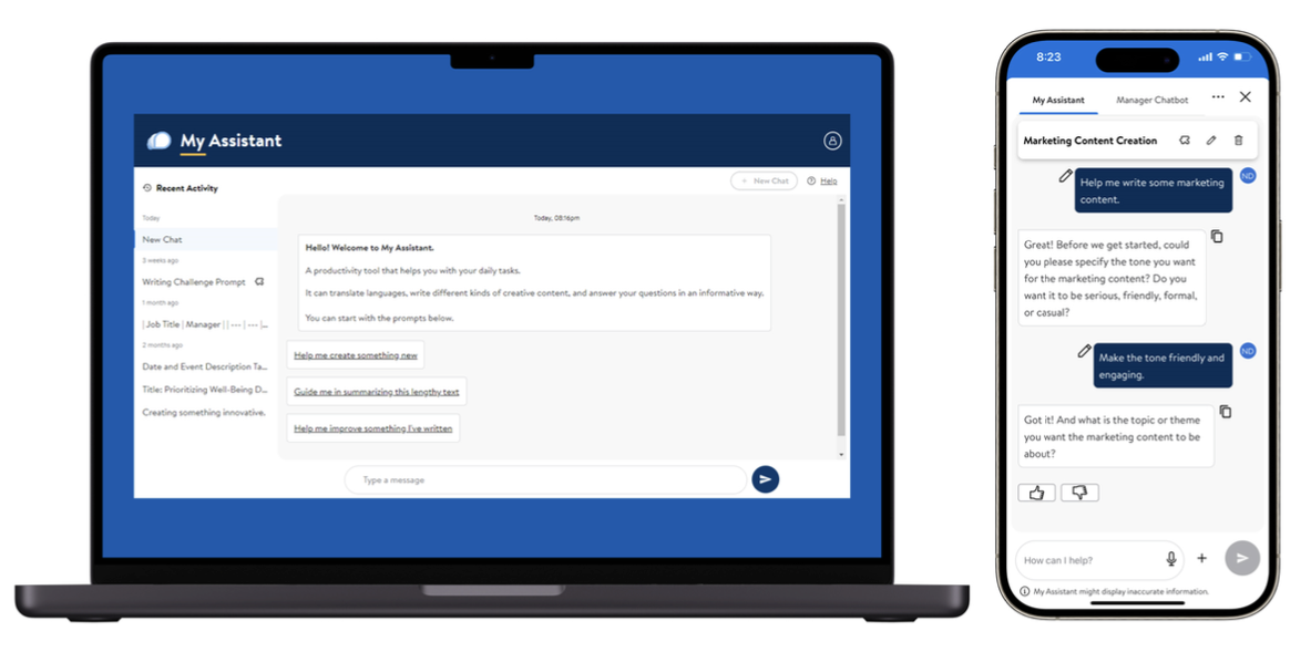 직원들을 위한 문서작성·보고서 초안 자동화 도구인 ‘마이 어시스턴트’는 8개국, 5만 명의 직원에게 배포되어 효율성과 생산성 향상에 기여하고 있습니다.