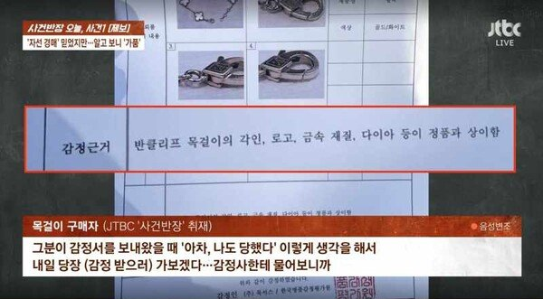 그러나 경매에 참여한 제보자는 220만 원에 낙찰받은 반클리프 아펠 목걸이가 정품이 아님을 감정으로 확인했다고 전했습니다. 해당 목걸이의 실제 가치는 약 100만 원 수준이었던 것으로 나타났습니다.