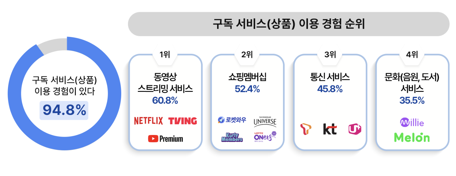 10명 중 9명 이상이 구독 경험