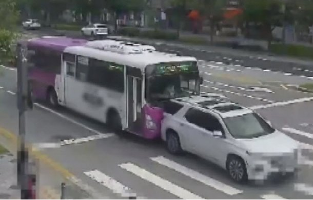 세종시 나성동, SUV 들이받고 150미터나 그대로 주행한 시내버스, 운전기사는 "사고 몰랐다" 진술해 논란